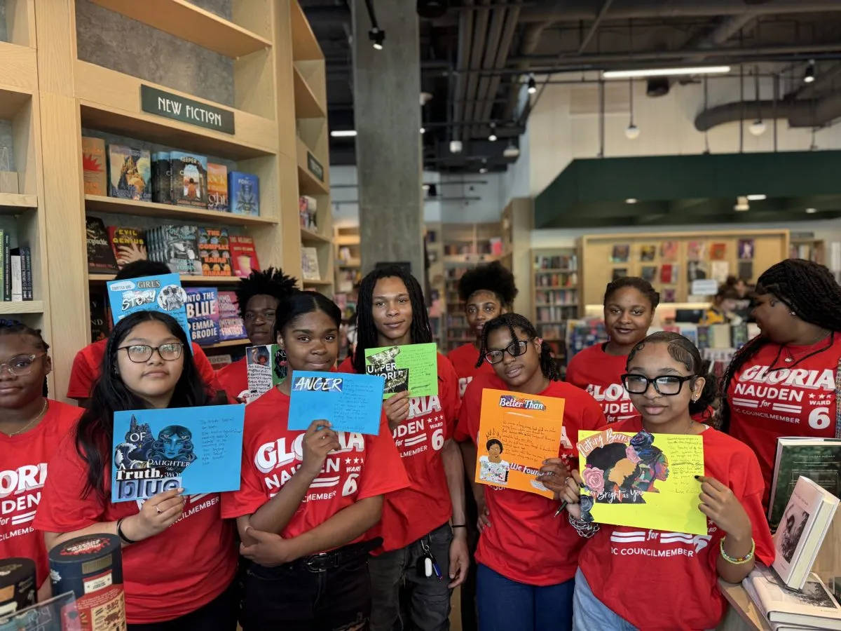 Activities included civic engagement lessons at Southwest Library, creating shirts and stickers at Artivism in Northwest, and poetry recitation at Politics & Prose at the Wharf. Students also learned about ranked-choice voting, crafted vision boards, visited the Peterbug Shoe Repair Academy, and weighed in on public policy during a teen summit hosted by former Metropolitan Police Chief Diane Grooms at an MPD command center at the Wharf.